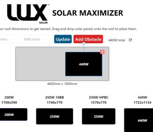 Enter your roof dimensions to get started. Drag and drop solar panels onto the roof to place them.